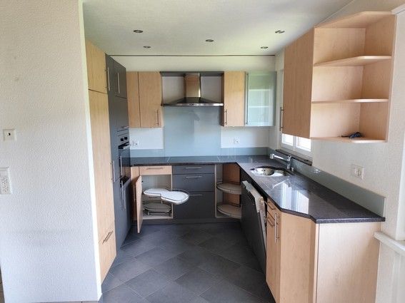 appartement 4,5p, 94m2, 1er étage, rue en impasse, quartier tranquille, rénovation 2025, avec balcon, cuisine agencée, lave-linge et séchoir dans l'appartement, garage individuel + 1 place de parc, grenier et cave, coin jardin commun, animaux interdits, non fumeur, gens soigneux et respectueux du voisinage, 1690CHF avec charges, immeuble de 6 appartements